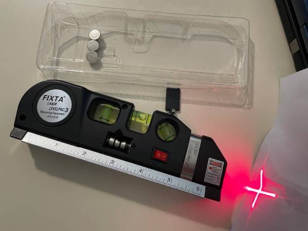 Комбинацията от лазер + либели + линия ви гарантира, че всичко ще бъде изпълнено с максимална точност. Работи на батерии LR44, включени в комплекта. Също така, като бонус пристига с допълнителен комплект батерии.